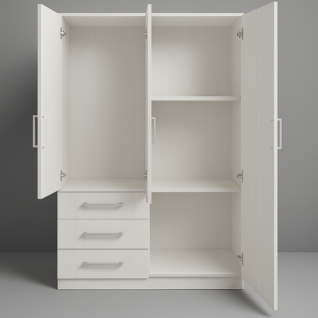 2 puertas para colgar y una puerta con cerradura y estantes.